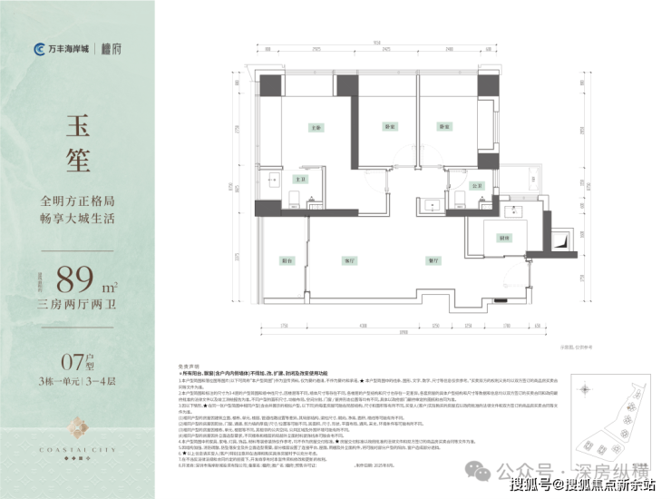 约89㎡3房2厅2卫,低门槛入驻海岸城!
