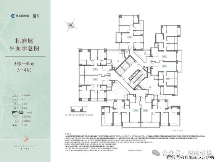 【3栋二单元】楼王单位,建筑层数46层,3梯4户,豪宅级梯户比,标准层层高3.05M
