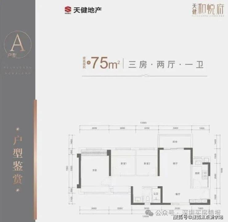 面积与户型主力户型为建面约75㎡、76㎡、89㎡、99㎡的3房2厅1卫或3房2厅2卫,部分户型可改造为4房。75㎡户型为竖厅南北通透,客厅开间约3.4米,阳台约4.29㎡;89㎡户型为经典竖厅,客厅开间约3.5米,阳台约4.65㎡;99㎡户型客厅开间约5.3米,阳台约5.1米,可改4房。