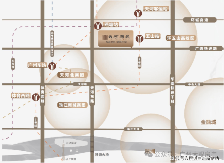 因为项目附近有华南快速干线和广园东快速干线、北环高速公路,而且距离珠江新城只有5公里左右,非上班高峰期开车大概20分钟,很近。