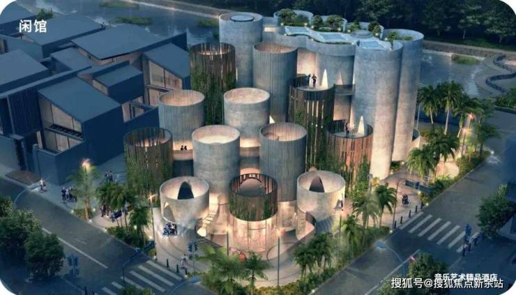 音乐主题艺术精品酒店出自华南理工大学建筑师钟冠球,位于丝竹巷,如果音乐是时间轴上的建筑,建筑则是空间轴上的音乐,错落的圆筒形如管弦乐器住在这里,仿佛能听见管弦的清脆和空灵。