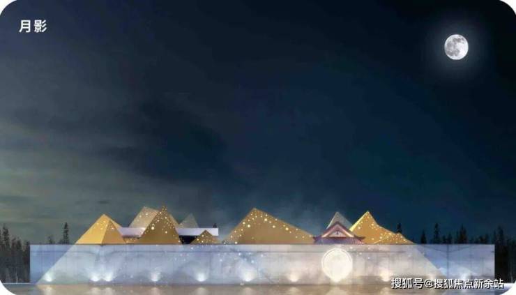 写意泼墨山水画古色古香的老戏台与变幻的月影灯光相结合构成一方沉浸式的艺术体验中心。