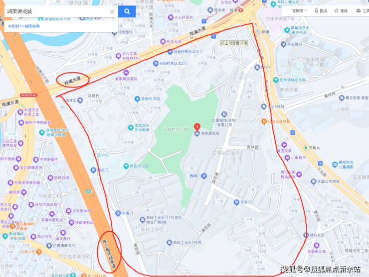 观城和鸿荣源以往甚至全深圳以往的大型旧改比较大的区别是,项目规划建设5大公园融入社区,改变了过去旧改项目都是超高容积率的惯例(楼盘高容积率,但片区不算是),并且规划了高速公路(梅观高速)直接连通项目车库,这是极具创新的实践。